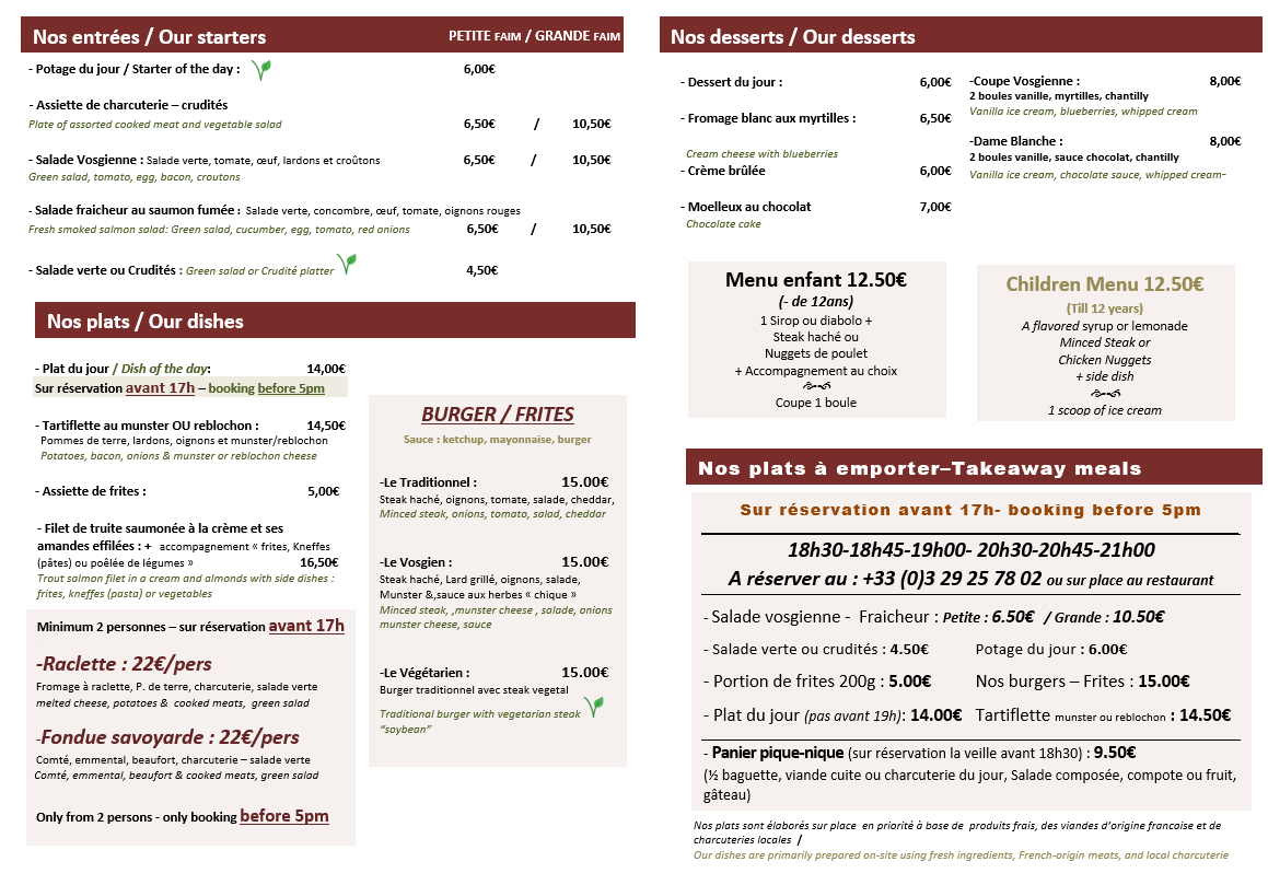 - Assiette du bucheron ( plat typique de nos montagnes avec des pommes de terre vapeur et son fromage blanc aux herbes, saucisse lorraine fumée, munster)