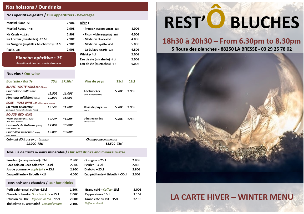 - Échine fumée & toffailles (spécialité vosgienne à base de pommes de terre, oignons et lardons ) ,